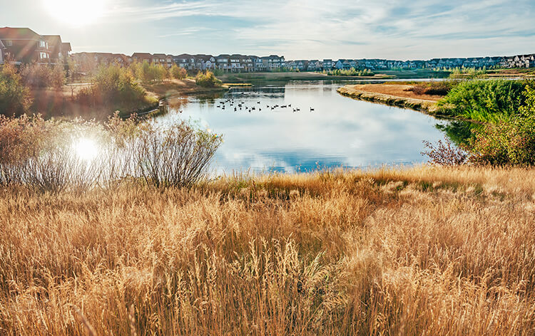 One of the many special places those pathways lead to is Mahogany’s 74 acre naturalized wetlands. A haven for all residents to enjoy, the wetland features a ring of pathways and interpretive areas surrounding scenic naturalized wetlands, and is a destination for residents who wish to stroll, cycle or jog in a quiet, natural setting. Many species of birds and small animals are drawn to the Mahogany Wetlands, making it an ideal place to spend a peaceful afternoon enjoying the beauty of nature.